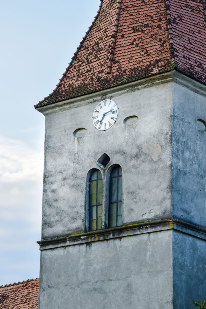• A torony ablakainak kettős osztású megoldása a romantika jegyeit viseli.