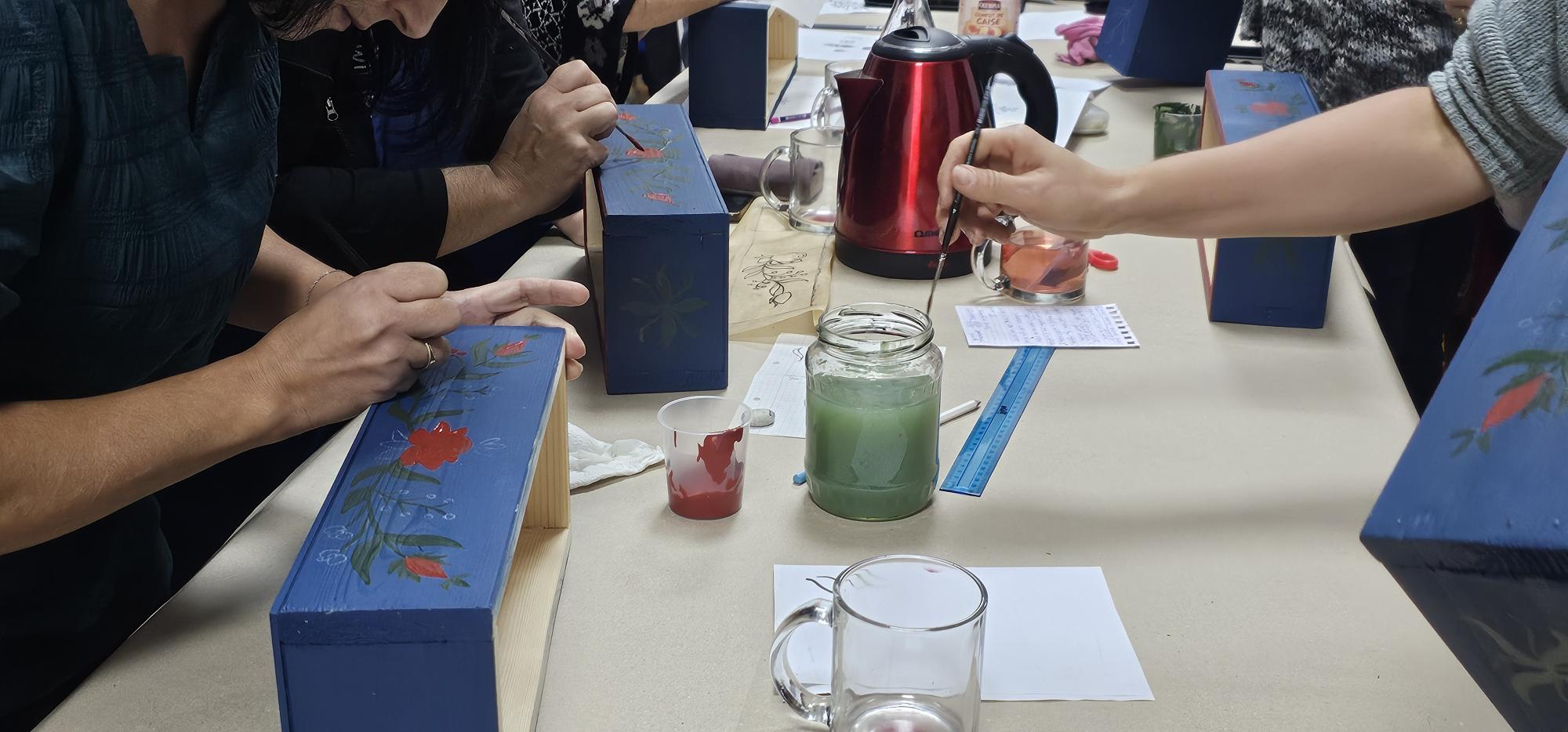 Az alkotóház rendszeres látogatói részt vehettek a Nemzeti Művelődési Intézet tananyaga alapján megvalósuló, jelenleg is zajló bútorfestés szakkörökön is. Ebben a hónapban a szakkör tagjai a Békés megyei szlovák dobozt festették, emellett feladatuk volt előkészíteni az október 16-án külön eseményként megtartott Bakó Mónika bútorfestő mester foglalkozásához kiszemelt székek és asztalok fa anyagát, illetve a festéshez szükséges bútorok alapozó színét.