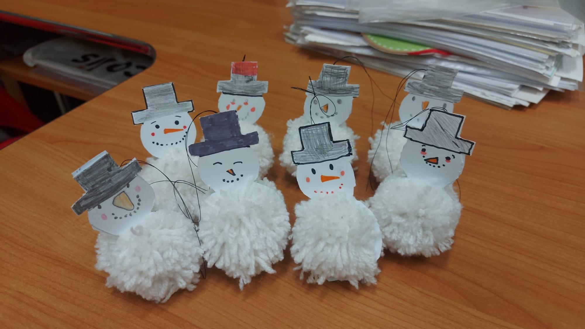 Az ezt követő alkalommal, december első hetében a Magyarfülpösi Szórványkollégium növendékeinek lehetőségük volt karácsonyfadíszeket készíteni a pom-pom készítés különböző technikáival. A nagyobbak hóember alakú figurákat készíthettek fehér fonalból és kartonból, a kisebbek pedig a pom-pom készítés alapjaival ismerkedhettek meg. A karton alapra létrehozott vidám kis hóember figurák arcát a fiatalok saját fantáziájuk szerint rajzolták, színezték. Az elkészült munkák külön-külön és együtt is jól mutattak.